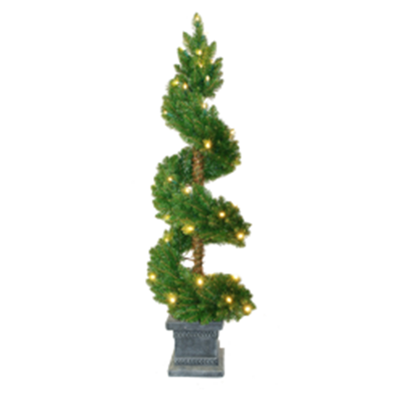 385 leaves of a 4 'two pointed leaf spiral potted tree. 16 "tree girth. 50 head type warm light+battery box. It is made of high-quality and environment-friendly materials. The spiral frame is equipped with super bright LED lights and luminous star top. Through many tests, it has been proved that our Christmas tree lamp decoration has weather resistance and durability.